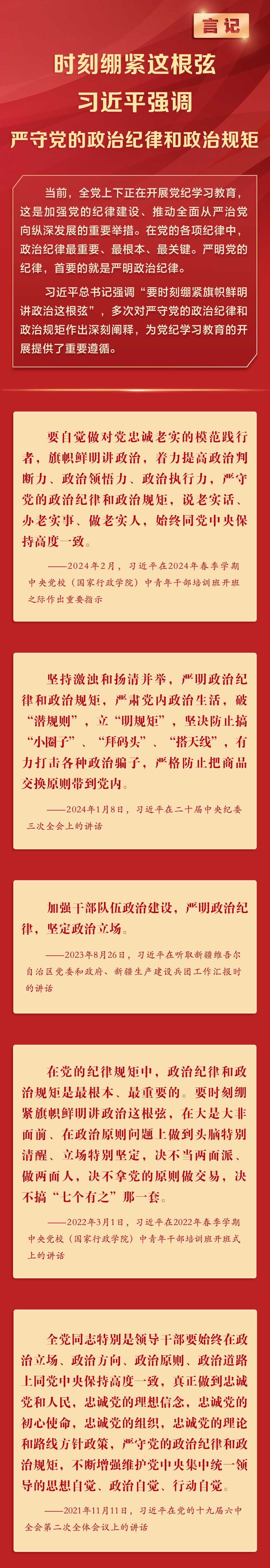 党纪学习教育·每日一课丨时刻绷紧这根弦 习近平强调严守党的政治纪律和政治规矩