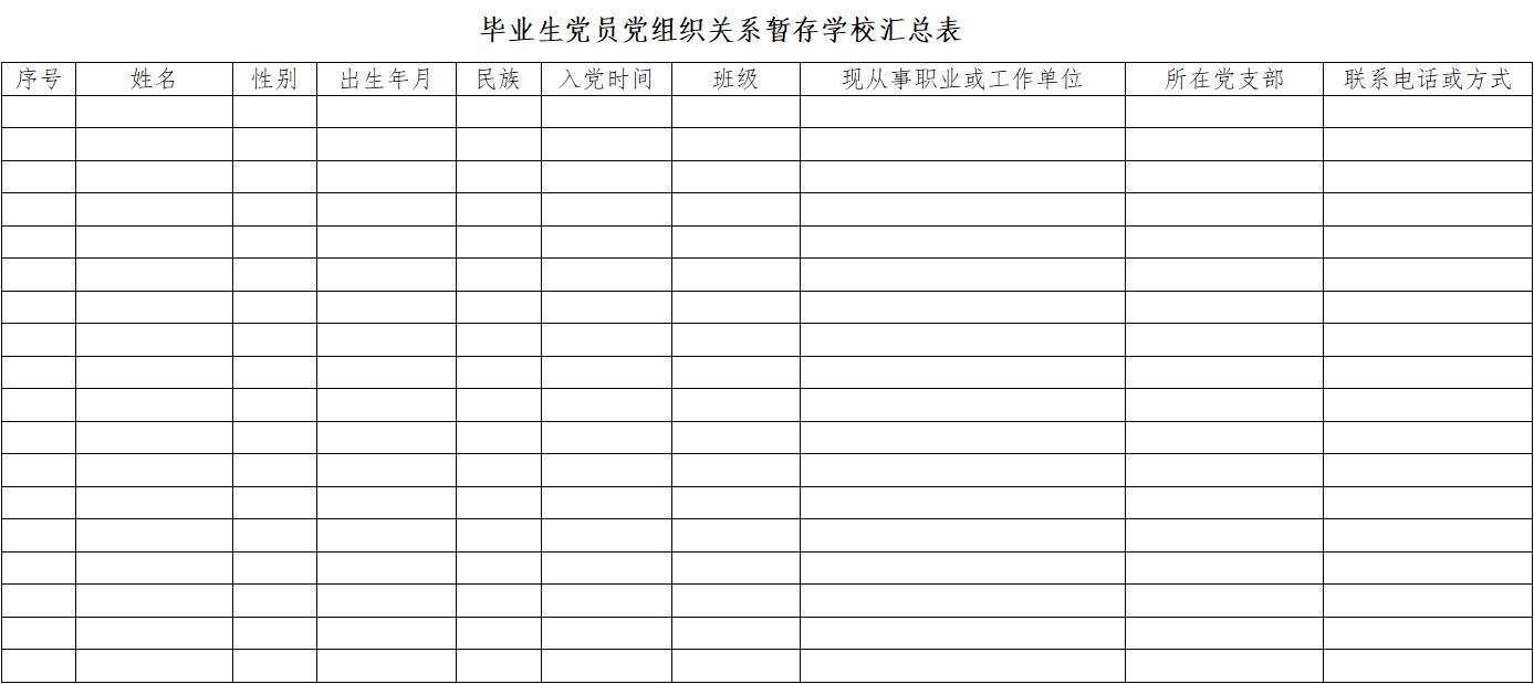 附表二 《毕业生党员党组织关系暂存学校汇总表》