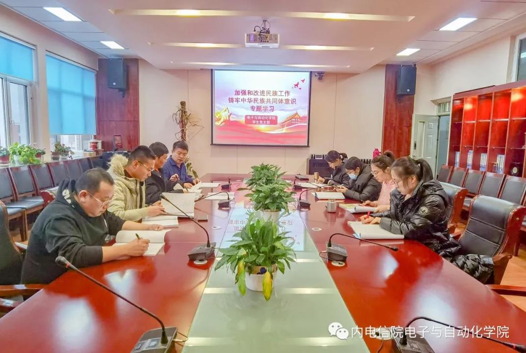 12月23日下午16:00,电子与自动化学院学生党支部在学院B202召开“铸牢中华民族共同体意识”专题学习,本次学习会议由学生党支部书记石磊主持,学生党支部全体教师党员参加,共安排了四项学习内容。