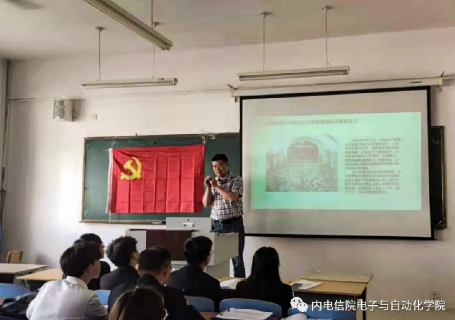 2021年6月1日下午,在教学楼B504由电子与自动化学院党总支副书记、学生党支部书记石磊以《党旗党徽的演变过程》为题,开展了学院分党校专题党课。要求所有入党积极分子,要通过了解中国共产党的党旗党徽来学习我们党光荣的历史,明确入党动机,规范行为,认真做好准备,早日为成为一名合格的共产党员。