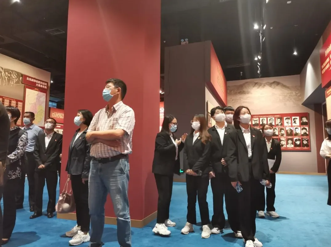 全体人员认真聆听了工作人员对展馆呈现的中国共产党不同历史阶段的情况介绍。参观由“建立中国共产党,夺取新民主主义革命伟大胜利”“成立中华人民共和国,进行社会主义革命和建设”“实行改革开放,开创和发展中国特色社会主义”“推进中国特色社会主义进入新时代,全面建成小康社会,开启全面建设社会主义现代化国家新征程”四个部分组成。通过1300余幅图片、200多件套文物实物,全方位、全过程、全景式、史诗般展现中国共产党波澜壮阔的百年历程,浓墨重彩地反映党的不懈奋斗史、不怕牺牲史、理论探索史、为民造福史、自身建设史,使我们深刻认识到红色政权来之不易、新中国来之不易、中国特色社会主义来之不易,深刻认识到中国共产党为什么能、马克思主义为什么行、中国特色社会主义为什么好。