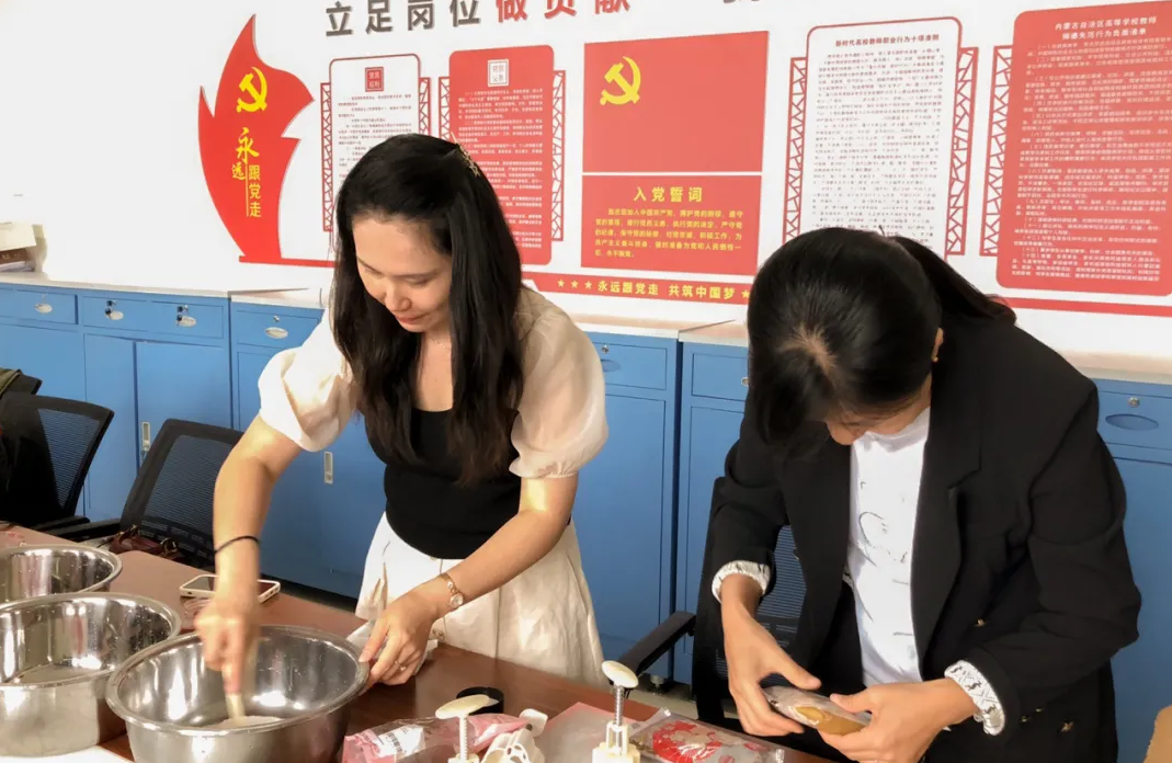 四季轮回,当时间来到九月,中秋节便如约而至了。今年的中秋节正值中国共产党成立一百周年和建校四十周年。在这美好的节日里,为弘扬中华优秀传统文化,电子与自动化学院党总支、分工会于2021年9月18日在B座教学楼二楼会议室组织开展了以“师生同乐庆中秋,灵心巧手包月饼”为主题的月饼制作活动。全体教师齐聚一堂,变身月饼制作达人,DIY制作“个性”月饼。
