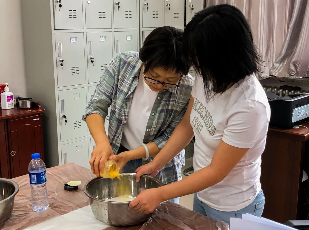 活动开始前,电子与自动化学院分工会将已将制作月饼的模具、馅料、面粉等工具和材料准备妥当,而教师们早早地来到活动现场等候。活动开始后,教师们热情高涨,纷纷参与到制作月饼的过程中,大家分工明确,和面、做酥皮、包馅、塑型每个步骤都有条不紊,一揉、一包、一压每个动作都浸透着一份美好的祝福。当中很多老师都是第一次亲手制作月饼,难免有些手忙脚乱,到后来慢慢地掌握了制作要领,当好看的月饼从自己的手里诞生,大家都感到非常喜悦和满足。