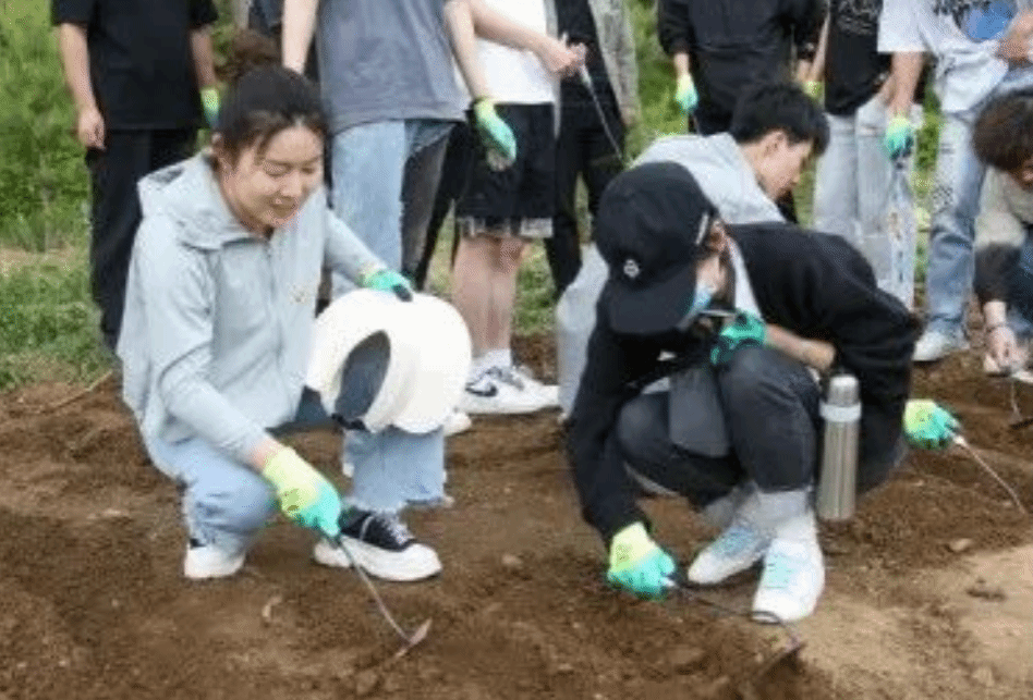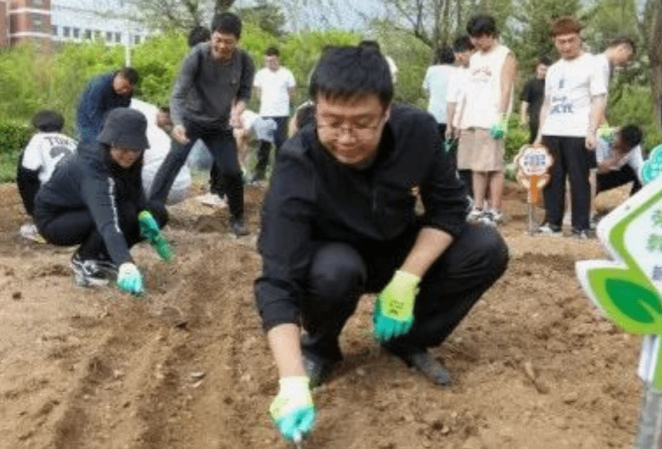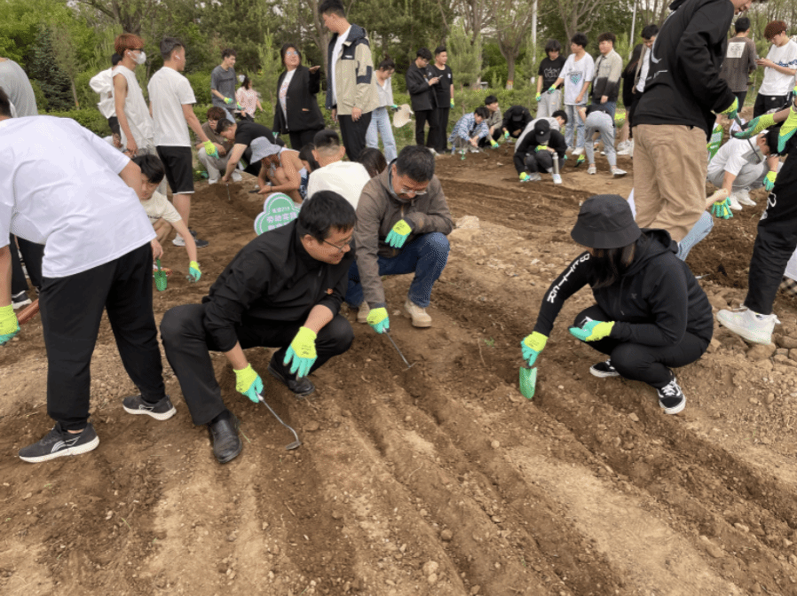 以党建带团建,党员老师们以身作则、率先垂范,拿起工具,弯着腰,不怕脏、不怕累,在地里挖出一条条整齐的种植区域,随后将花种拨进土壤。青年学生们在老师的带领下分工合作,有的翻土、有的埋土、有的浇水,有的处理地头垃圾。忙碌的身影和劳动的欢声笑语,在明媚的阳光中展现出一幅生机勃勃的画面。