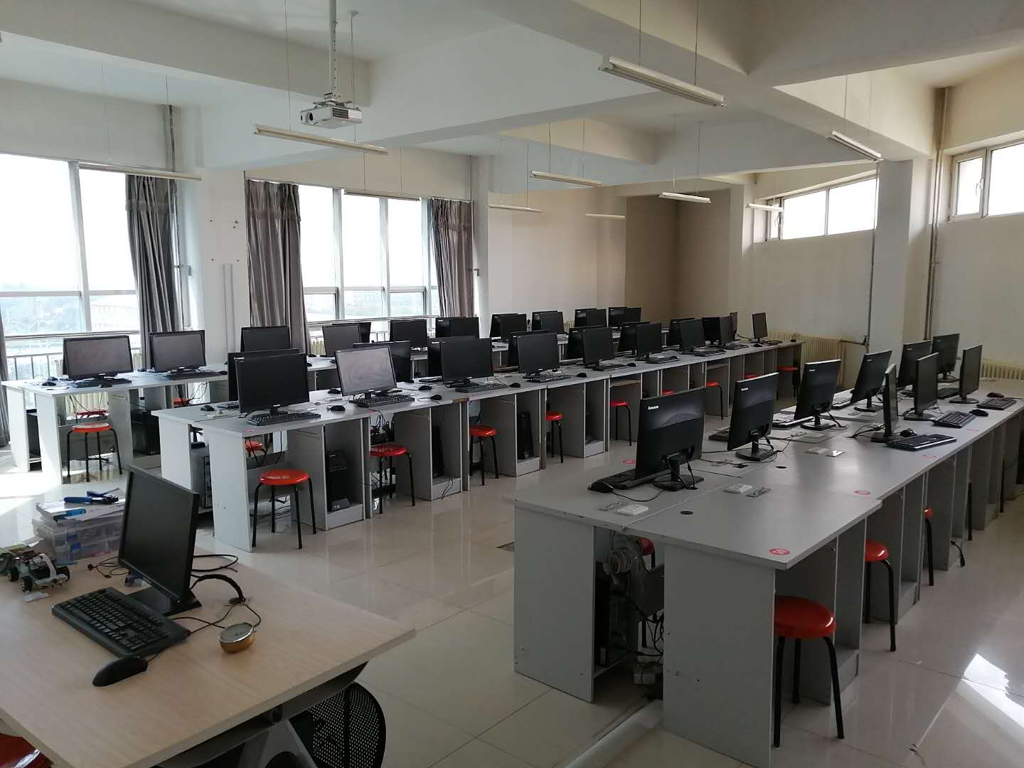 CAD实验室是汽车电子技术与无人机应用技术专业的基础实验室,主要承担《AUTOCAD绘图与识图》、《单片机C51技术》、《非线性编辑》等课程,还承担毕业生的毕业设计任务,此外,有针对性的开放实验室,为学生创新活动及比赛提供实验空间。该实验室共有47台电脑,安装常用办公软件、编程软件、绘图软件、机电装备软件等。组建局域网,方便教师授课与管理学生。