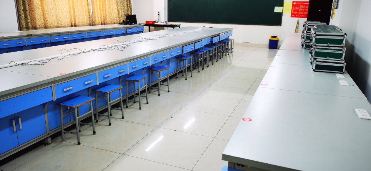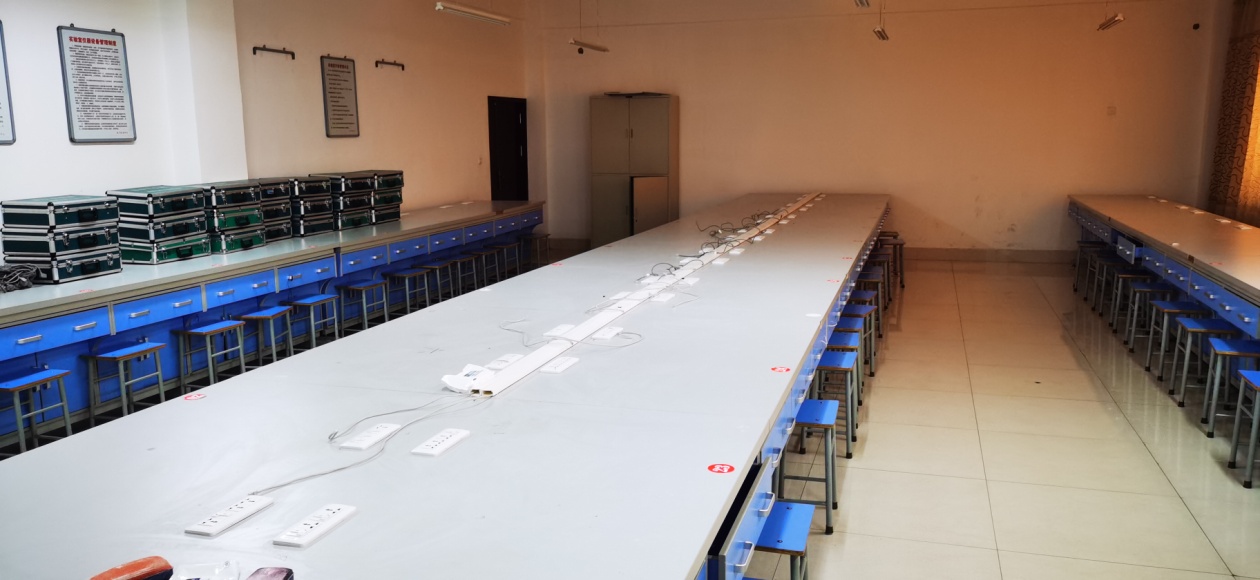 实验室配稳压电源、示波器、信号发生器等电路测试设备。通过在实训室里教师开设以项目制作为主的教学内容。学生在完成项目制作的同时掌握较为抽象、复杂的知识内容。课程主要使学生具备从事电子类工作的高素质人才的必需的电子技术的基本理论、基本知识和基本技能,并为后续课程的学习准备必要知识,为今后从事的实际工作打下必要基础。