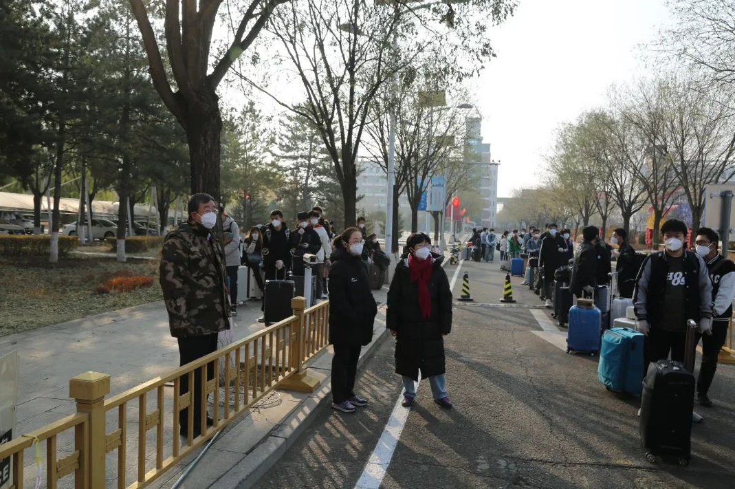 学生们在老师和属地工作人员的组织下有序乘车。目送着一批又一批学生和随车老师缓缓驶出校园,很多老师都湿了眼眶,他们回想起和学生们共克时艰的日子,想起与学生守望相助里的每一份感动,同时,也为孩子们能回到父母身边感到高兴。收起情绪,老师们又投入到组织下一批学生有序分流返乡的工作中。