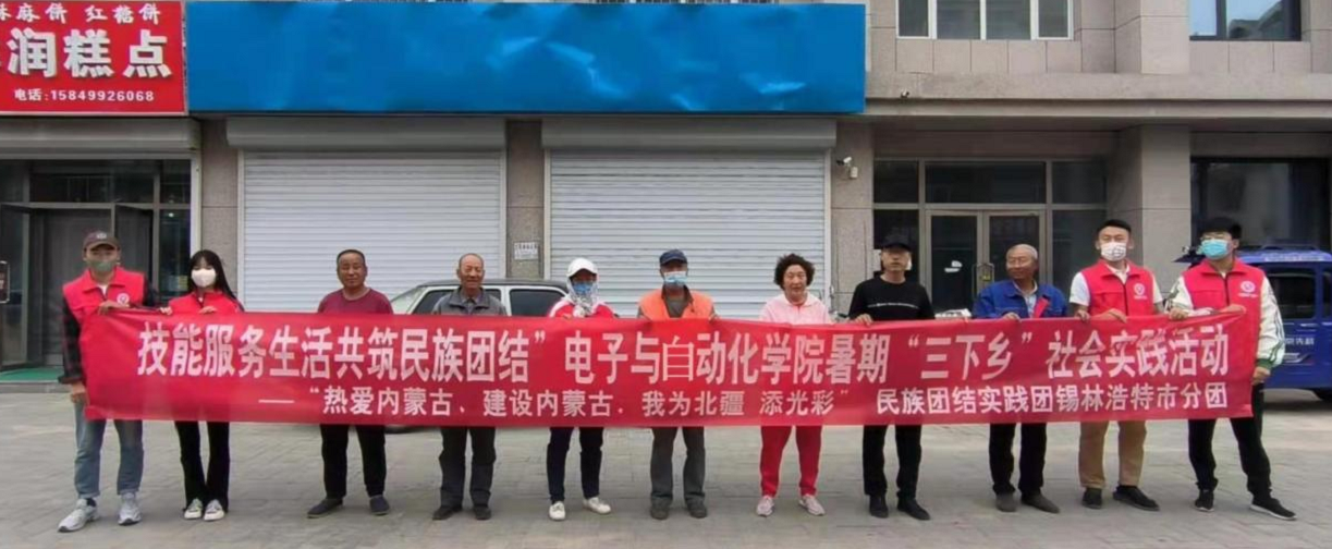 为深入学习宣传贯彻习近平新时代中国特色社会主义思想和党的十九大及十九届历次全会精神,进一步贯彻落实习近平总书记在庆祝中国共产主义青年团成立100周年大会上的重要讲话精神,响应自治区团委、自治区青联和自治区学联“热爱内蒙古、建设内蒙古——我为北疆添光彩”主题活动倡议,电子与自动化学院团总支在校党委领导下,在校团委、学院党总支的指导和支持下,依托学院建设线上线下“协作-融合-实践”大课堂。电子与自动化学院分布在锡林郭勒盟共青团员成立临时团支部,组建“团青铸梦”队民族团结实践团锡林郭勒盟分团,带领志愿者于8月17日,来到了锡林浩特市乌兰图嘎社区,开展“技能服务生活 共筑民族团结”主题暑期“三下乡”社会实践活动,引导电子学子立足专业本身,技能服务生活,铸牢中华民族共同体意识。