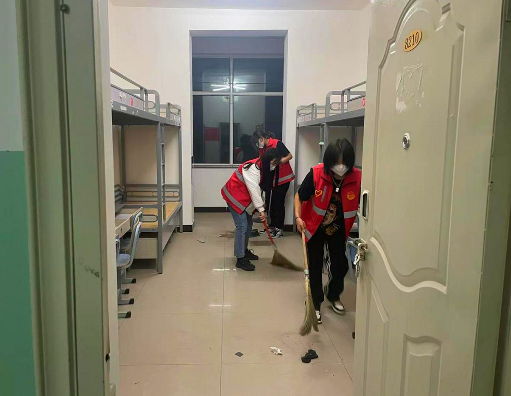 志愿者清理新生宿舍