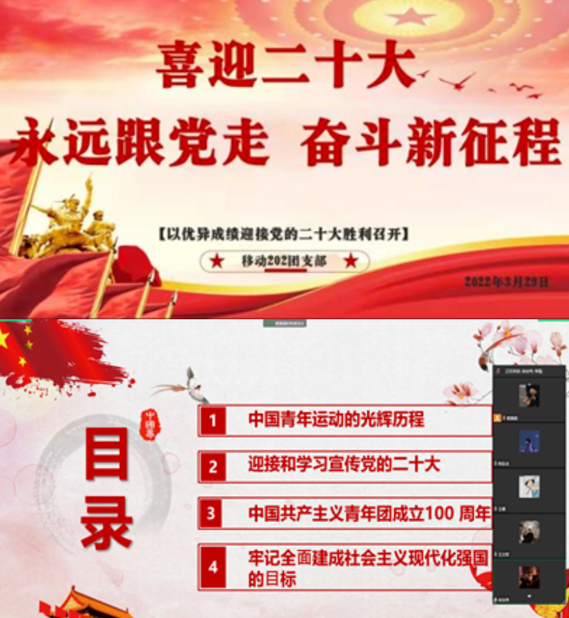 为深入贯彻落实习近平新时代中国特色社会主义思想和党的十九大、 十九届历次全会精神,回顾党的光辉历程、讴歌党的丰功伟绩、 持续深化党史教育学习。深化社会主义核心价值观,加强革命传统教育和爱国主义教育,引导广大团员青年从党的大历程中感悟真理力量,发扬优良传统,赓续红色基因,永远跟党走,奋进新征程,以崭新姿态迎接党的二十大胜利召开。电子与自动化学院团总支组织各年级团支部在3月28日—4月3日开展以“喜迎二十大、永远跟党走、奋进新征程”为主题的线上团日活动。