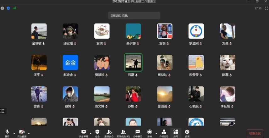 此次会议的召开,目的是让毕业生了解“学社衔接”的流程及内容。同时通过加强工作指引,集中开展线上指导工作,确保我院2022届毕业生团员团组织关系转接工作顺利完成。