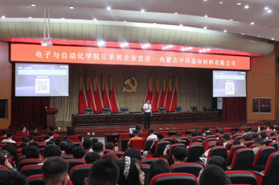 6月14日,电子与自动化学院邀请内蒙古中环晶体材料有限公司进校宣讲,企业负责人为学生们详细介绍了“三个否定”的企业文化、本年度岗位需求、用人标准及人才培养等信息,并就学生关心的岗位待遇、个人发展前景等问题做出回复。宣讲会现场气氛热烈,参会学生踊跃提问并认真记下了笔记。