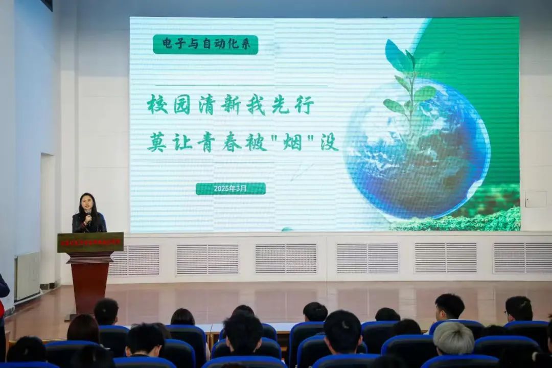 3月20日,电子与自动化系成功举办“做文明大学生——清新校园我先行,莫让青春被‘烟’没”为主题的禁烟动员大会。本次活动旨在增强师生对吸烟危害的认识,营造清新、健康的校园环境,共同为打造无烟校园迈出坚定步伐。