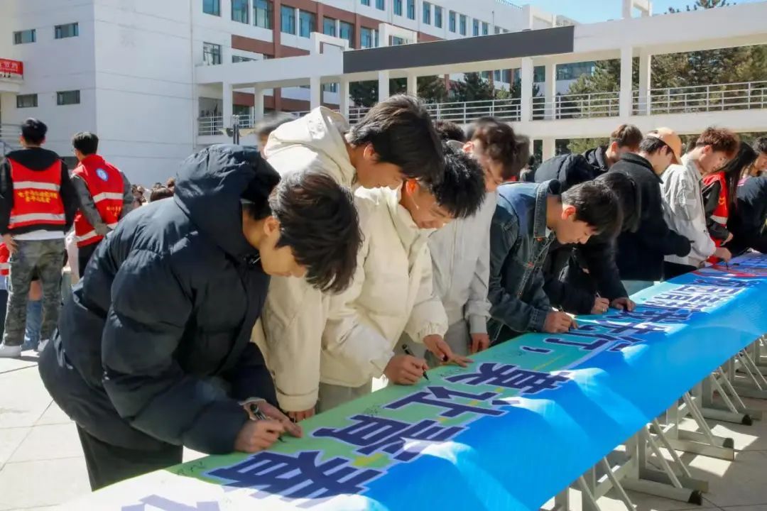 动员大会结束后,现场举行了条幅签字仪式。印有活动主题的巨型条幅在创业园小广场上展开,师生们有序上前,郑重签下自己的名字。每一个签名,不仅代表着对无烟承诺的践行,更体现了对习近平总书记所期望的 “有理想、敢担当、能吃苦、肯奋斗” 青年形象的不懈追求。师生们纷纷表示,要以实际行动影响和带动身边同学,让青春在无烟的清新环境中绽放光彩,为实现中华民族伟大复兴的中国梦贡献力量。