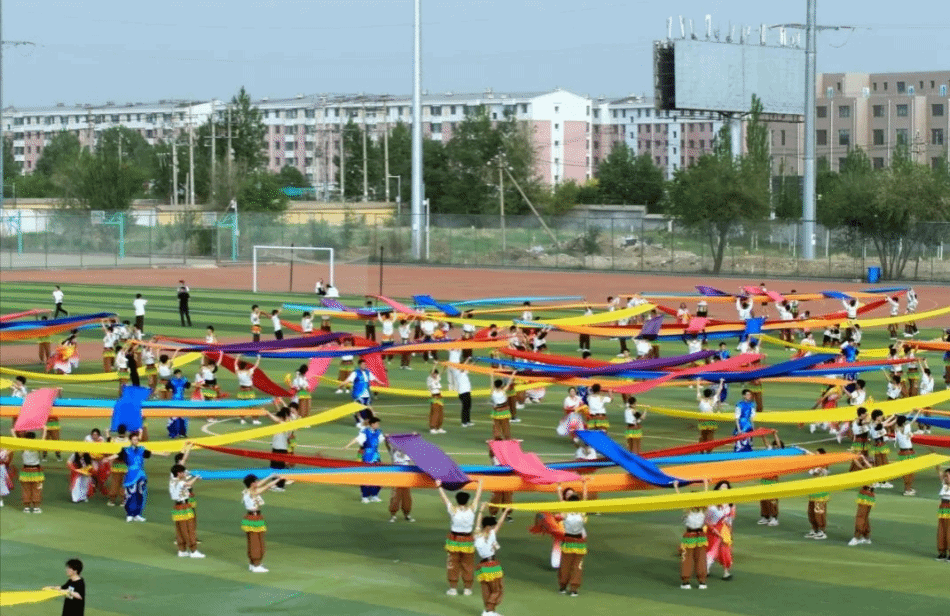 运动会开幕式上,丝绸表演惊艳全场。五彩丝绸如灵动彩练,舞者舒展身姿,或擎绸旋转,绸缎翻飞间似云霞漫卷;或挥绸俯冲,流光溢彩如浪涛奔涌。丝绸与光影交织,在舞台上勾勒出山河壮丽之景,尽显东方美学韵味,赢得阵阵掌声。