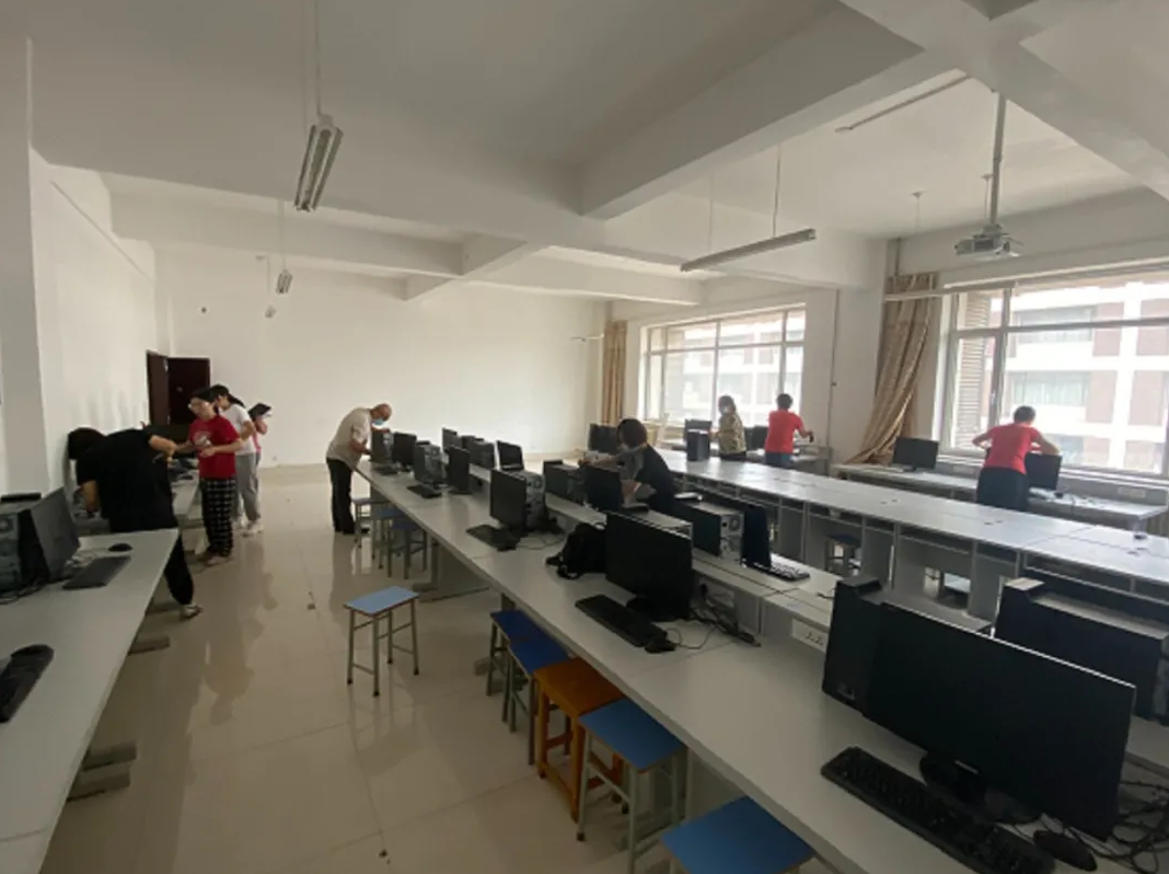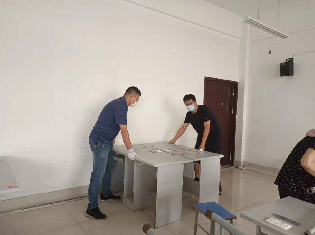 电子与自动化学院党总支面向全体教师发出倡议,组建若干检修小分队,于开学前一周对我院实训楼C座的实验实训设备进行集中维护、检修及优化,对实训环境进行整理、安全排查及消杀等工作。本次活动共完成实训楼C座15个实训室的改造升级,53个实训室的检修、维护及清扫消杀工作。