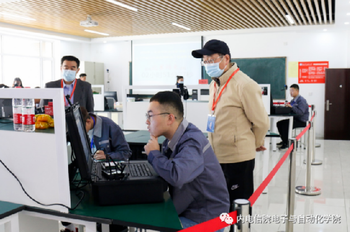 为了积极响应本次赛事,学校、学院领导给予了高度重视和大力支持,电子与自动化学院本着公平、公正、公开的原则按照自治区教育厅要求,对标国赛标准,积极筹备,从竞赛场地的布置到竞赛设备的标准做到与国赛零差别,为参赛选手营造国赛氛围。比赛当天,我校教务处祁培丽副处长、电子与自动化学院刘占伟院长亲临现场,参加比赛开幕式。