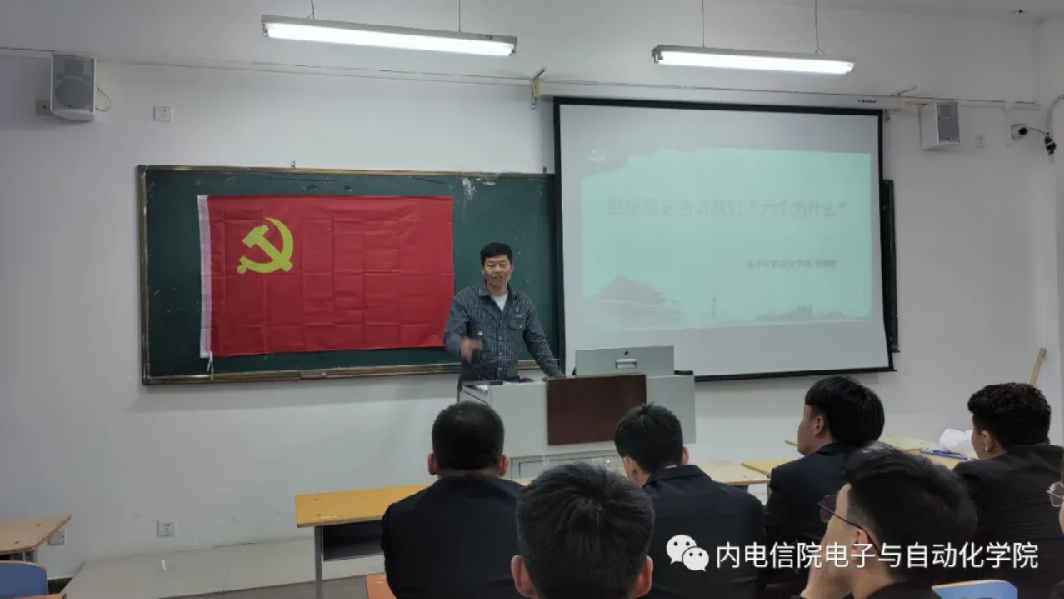 2021年6月4日晚20:00在教学楼B504由电子与自动化学院党总支学生党支部宣传委员金瑞敏以《百年党史告诉我们“六个为什么”》为题,开展了学院分党校专题党课。要求所有入党积极分子,要通过学习党史了解“六个为什么”,明确入党动机和入党的初心,规范行为,认真做好准备,早日为成为一名合格的共产党员。