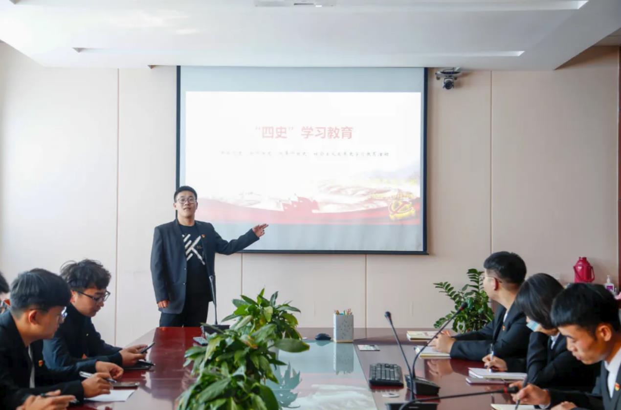 活动开始,学生代表包俊首先通过为大家播放微党课《遵义会议与长征胜利》来展开学习分析,主要讲述了遵义会议召开的历史背景、遵义会议召开的具体过程以及维护遵义会议决议与长征胜利。之后,学生代表包俊与其他学生党员及党员发展对象轮流诵读了“党史、新中国史、改革开放史、社会主义发展史”学习材料,进行了自由交流讨论。大家一致认为重视历史、以史为镜是我们把握今天,展望未来的基础。历史是中华民族最好的老师,以史为鉴、面向未来、面对挑战,我们更要不忘初心,牢记使命。
