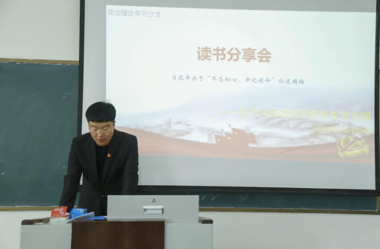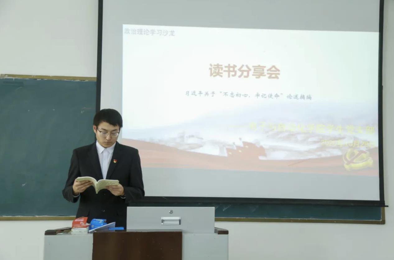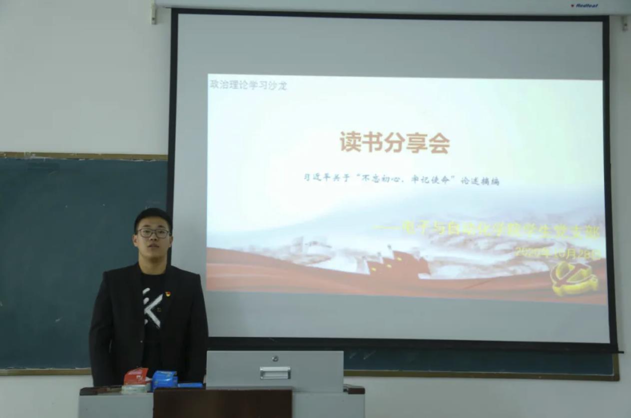 为更好的建设学习型党组织,帮助广大学生党员养成爱读书、勤思考的好习惯,进一步推进“学生党员先锋岗”的志愿工作。2020年10月28日,电子与自动化学院学生党支部组织学生党员在B座教学楼214室开展了本次“读书分享会”。电子与自动化学院学生党员参加了本次活动,本次学习活动由学生党员代表包俊主持。