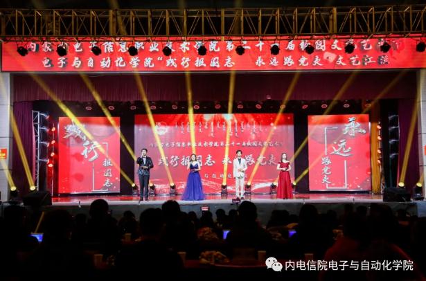 用激情搭建梦想的舞台,用心弦奏响美妙的乐章。为进一步推动电子与自动化学院文化育人,树立文化自信,做好学生美育教育,丰富校园文化生活,努力营造积极向上、清新高雅、健康文明的校园文化氛围,电子与自动化学院以文艺汇演为平台充分展现了我院教职工辛勤工作、团结奋进的精神风貌,展示出了学生的青春风采。我院于11月29日19:30在文体中心二楼隆重举行了以“践行报国志,永远跟党走”为主题的第二十一届校园文化艺术节文艺汇演。