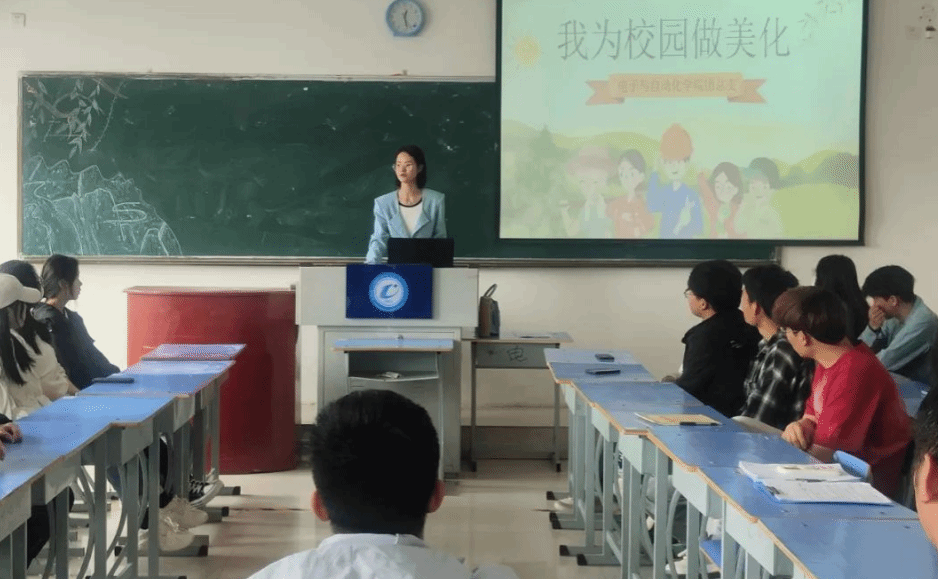 电子与自动化学院团总支于5月11日开展“我为校园做美化”劳动实践动员会。此次动员会由电子与自动化学院团总支辅导员赵雪妮主持,学院各团支部书记与青年学生代表参加。宣讲会上赵雪妮老师首先向大家介绍了劳动教育宣传月各项活动的细则;其次向大家说明了“我为校园做美化”劳动实践的实际意义;最后将各团支部“我为校园做美化”劳动实践区域进行划分,并与青年学生们一起到我校劳动实践基地,在现场将各团支部的劳动实践区域进行划分。