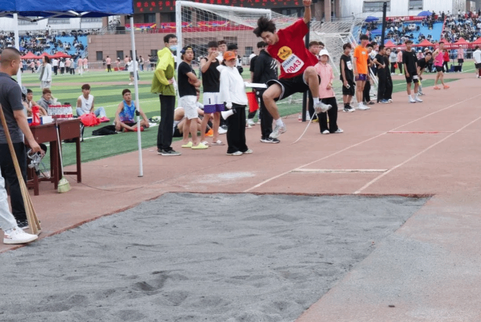 跳远沙坑旁,选手们蓄力一跃,身体在空中划出一道优美的弧线,那是力量与技巧的完美结合。