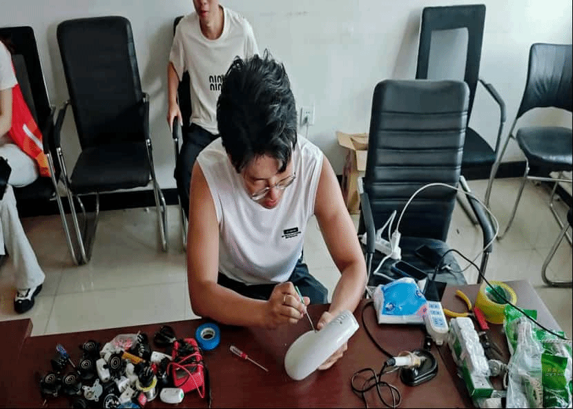 宣讲结束后,居民们将家中损坏的电风扇、电饭煲等电器带到现场。志愿者们发挥专业优势,熟练地拆螺丝、查线路、换零件,认真维修每一件电器。与此同时,安全用电宣讲也同步进行。志愿者们通过发放手册和现场讲解,向居民普及日常用电注意事项、电器故障处理方法等知识,为居民安全用电保驾护航。