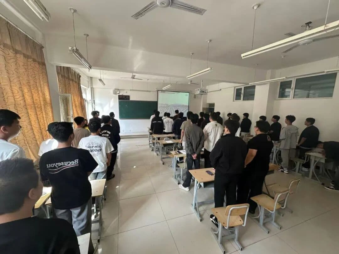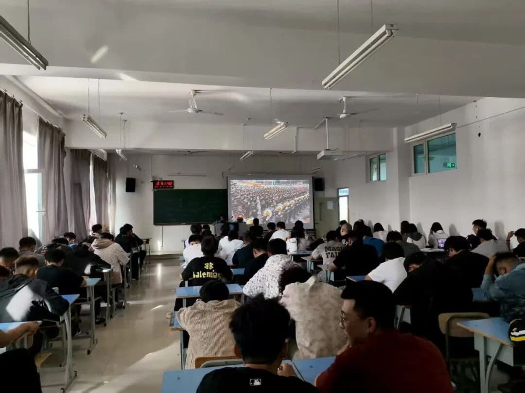 当天上午,校园内洋溢着庄重而热烈的氛围。各班级早早打开多媒体设备,调试好直播信号,师生们怀着激动的心情,整齐就座,等待着阅兵仪式的开始。