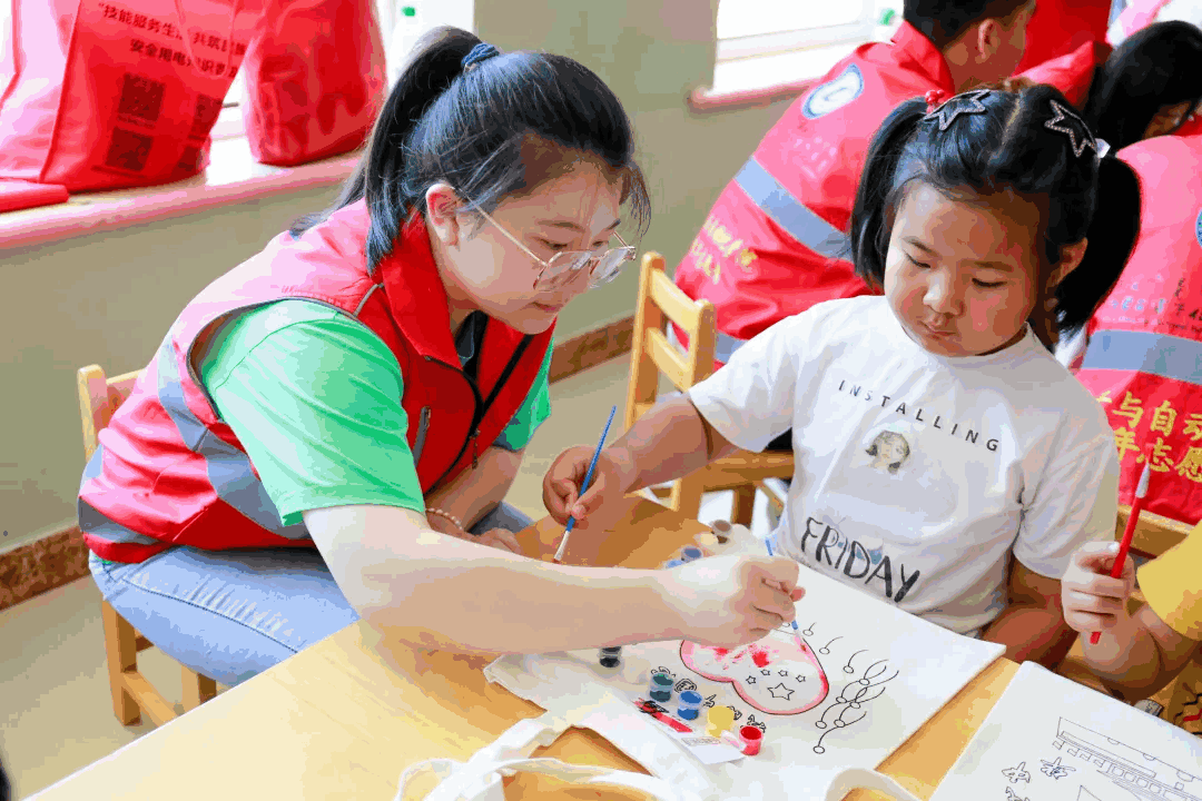 为积极响应习近平新时代中国特色社会主义思想中关于青少年爱国主义教育和红色文化传承的号召,引导广大青少年深刻认识爱国、爱党,激励青少年一代增强历史责任感和使命感,志愿者们来到呼和浩特市赛罕区巴彦镇星辰幼儿园。他们给幼儿园小朋友们播放抗日题材的动画片《芦荡小英雄》,志愿者们通过解说、提问等方法,帮助小朋友们了解影片内容、历史背景,让孩子们懂得今天的幸福生活来之不易。电影观看结束后组织了涂鸦活动,志愿者们为小朋友们分发调色盘、颜料、帆布袋和画笔等各类工具材料,他们坐到小朋友们的身边,教他们如何使用画笔,如何稀释颜料进行涂色。小朋友们发挥着自己的想象力和创意,在帆布袋上涂鸦和绘画。此次活动提升了小朋友们的动手实践能力,也加深了小朋友们的爱党爱国情感,让小朋友们从小坚定听党话、跟党走的决心,在心中埋下了一颗向党靠拢的红色种子,激励孩子努力成长为能够担当民族复兴大任的时代新人。