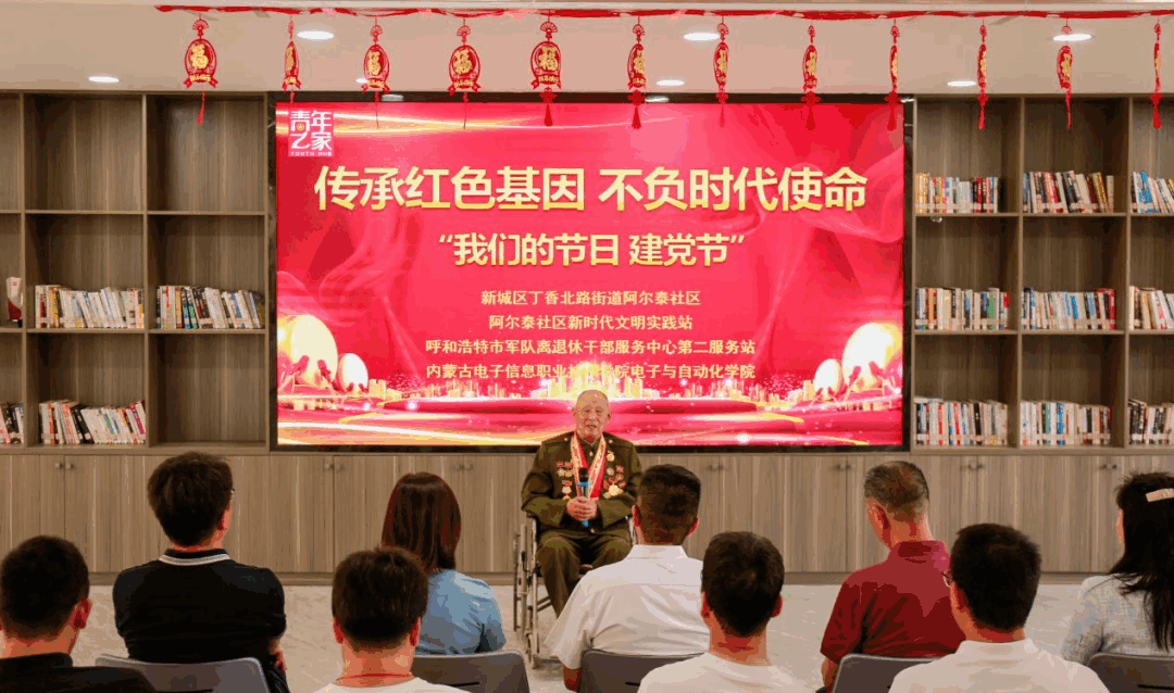 为引导和帮助青年学生回顾历史进程,延续红色血脉,争做有理想、敢担当、能吃苦、肯奋斗的新时代好青年。青年志愿者们走进内蒙古电子信息职业技术学院社区学院呼和浩特市阿尔泰社区教学点,与社区教学点居民共同追忆革命先烈的峥嵘岁月,传承红色基因,汲取信仰之力。社区邀请94岁抗美援朝老战士来到现场,为大家上了一堂特殊的主题课。老战士精神矍铄,话语清晰,用生动的语言、真挚的情感给大家讲述参加战争的亲身经历和战斗故事,让在场的师生仿佛置身于抗美援朝那段烽火硝烟的峥嵘岁月,感受到了中国人民志愿军英勇无畏,不怕牺牲,敢于斗争,敢于胜利的伟大精神,大家受到了一次深刻的爱国主义教育。随后,志愿者们将慰问品送到老战士家中,与老战士促膝长谈,详细询问他的生活起居、身体状况和家庭情况。此次活动使志愿者们铭记抗美援朝战争的艰辛历程和伟大胜利。未来的日子他们将努力学习、奋发图强、用实际行动为家乡的建设和发展贡献力量,为“伟大的中国梦”添砖加瓦。