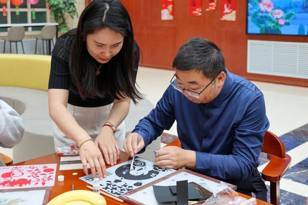 分享结束后,同学们开始动手制作灯笼和非遗金箔画。在老师的悉心指导下,大家充分发挥创意,制作出了一盏盏精美的灯笼和一幅幅璀璨的金箔画。这些作品不仅展示了同学们的才艺,也为活动现场增添了浓厚的节日气氛。