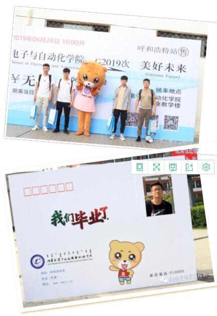 毕业季的钟楼广场旁,有一张毕业的车票,车站是电子与自动化学院,下一站是美好未来,却没有写始发站,因为我们都知道,电子与自动化学院的始发地悠久。我们的前程也没有终点站,因为不懈的努力就是我们的使命。希望同学们坚守电子学院的风骨、才情和气派,胸怀梦想、脚踏实地。无论大家走多远、停泊到哪里,电子学院将是同学们永远的家园。
