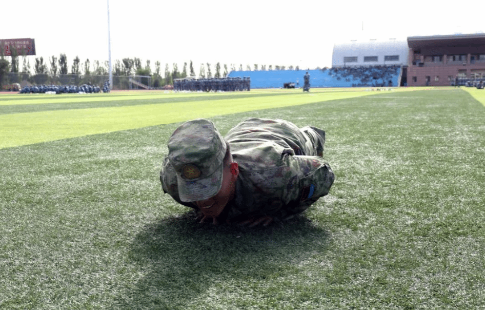 拥有好体力的同学和教官比赛上肢力量