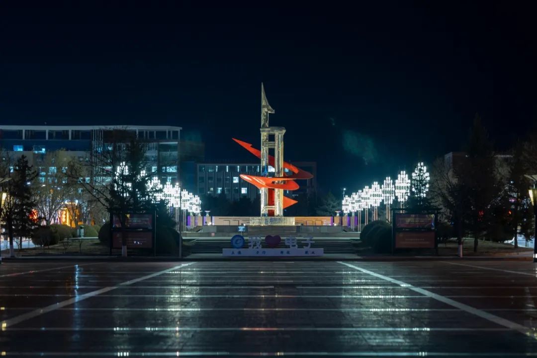 夜幕下,校园标志散发独特魅力。艺术造型灯光下鲜明立体,地面反光如细碎星芒。“我爱电子” 字样静静传递眷恋,空气都裹着青春记忆的温度。