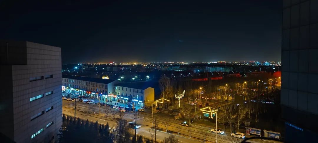 当夜幕如墨般倾洒,校园周边的建筑在沉沉夜色中轮廓尽显。楼体上亮起的灯光,宛如繁星坠落人间。街道上车流有序穿梭,商铺灯火通明,热闹与静谧交织,绘就一幅迷人的都市校园夜景图。