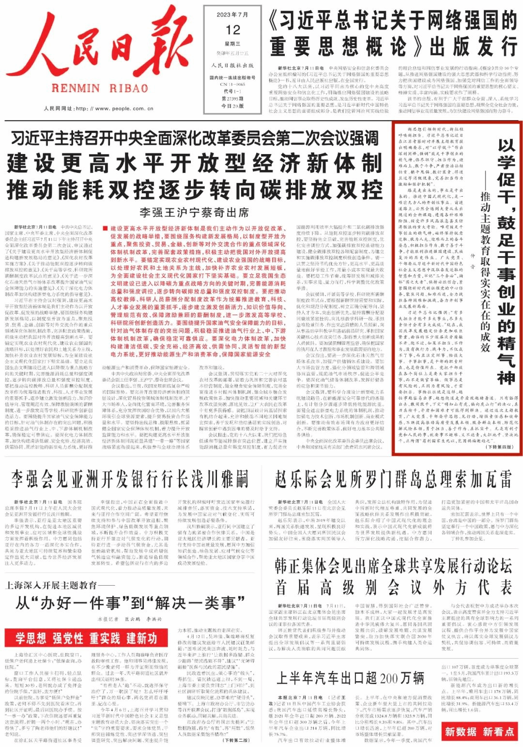 “各级党组织要教育引导党员、干部落实‘重实践’要求,坚持学思用贯通、知信行统一,匡正干的导向,增强干的动力,形成干的合力,在以学促干上取得实实在在的成效。”习近平总书记近日在江苏考察时围绕“以学促干”提出明确要求,强调“树牢造福人民的政绩观”“鼓足干事创业的精气神”“形成狠抓落实的好局面”。《人民日报》刊发三篇仲音文章,围绕“以学促干”进行重点阐释。