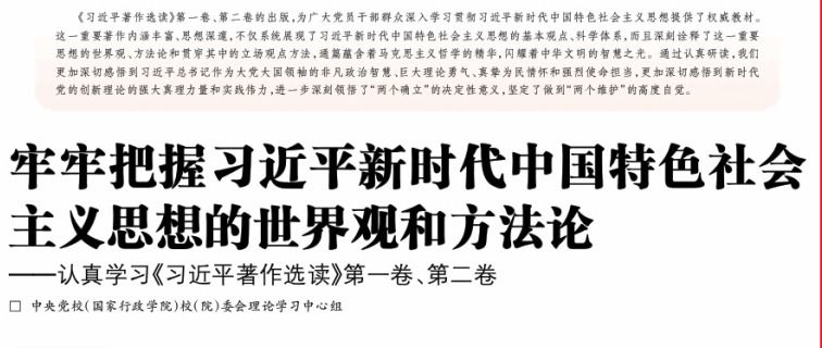 牢牢把握习近平新时代中国特色社会主义思想的世界观和方法论——认真学习《习近平著作选读》第一卷、第二卷中央党校(国家行政学院)校(院)委会理论学习中心组《习近平著作选读》第一卷、第二卷的出版,为广大...