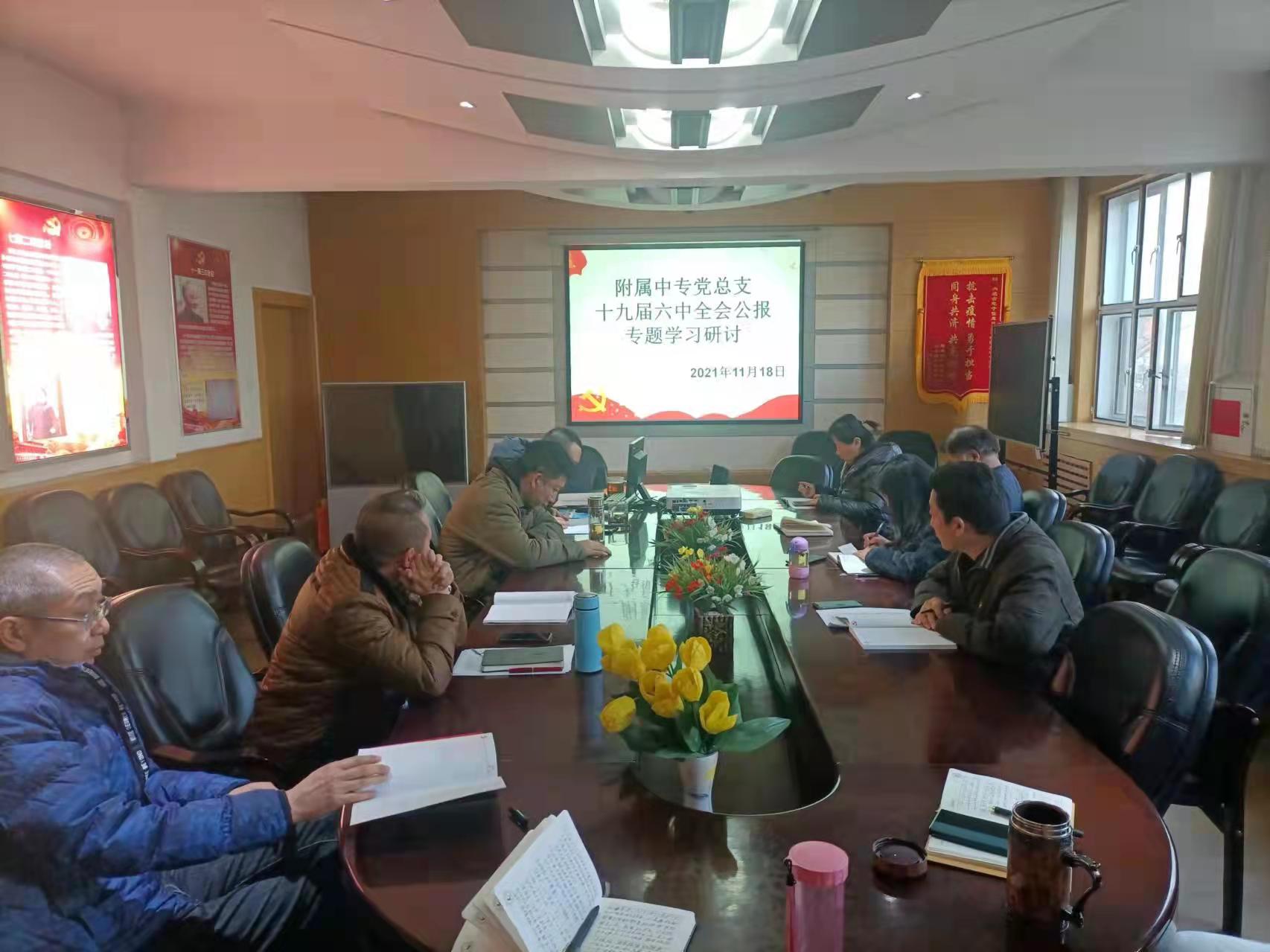 附属中专党总支专题学习研讨中国共产党第十九届中央委员会第六次全体会议公报