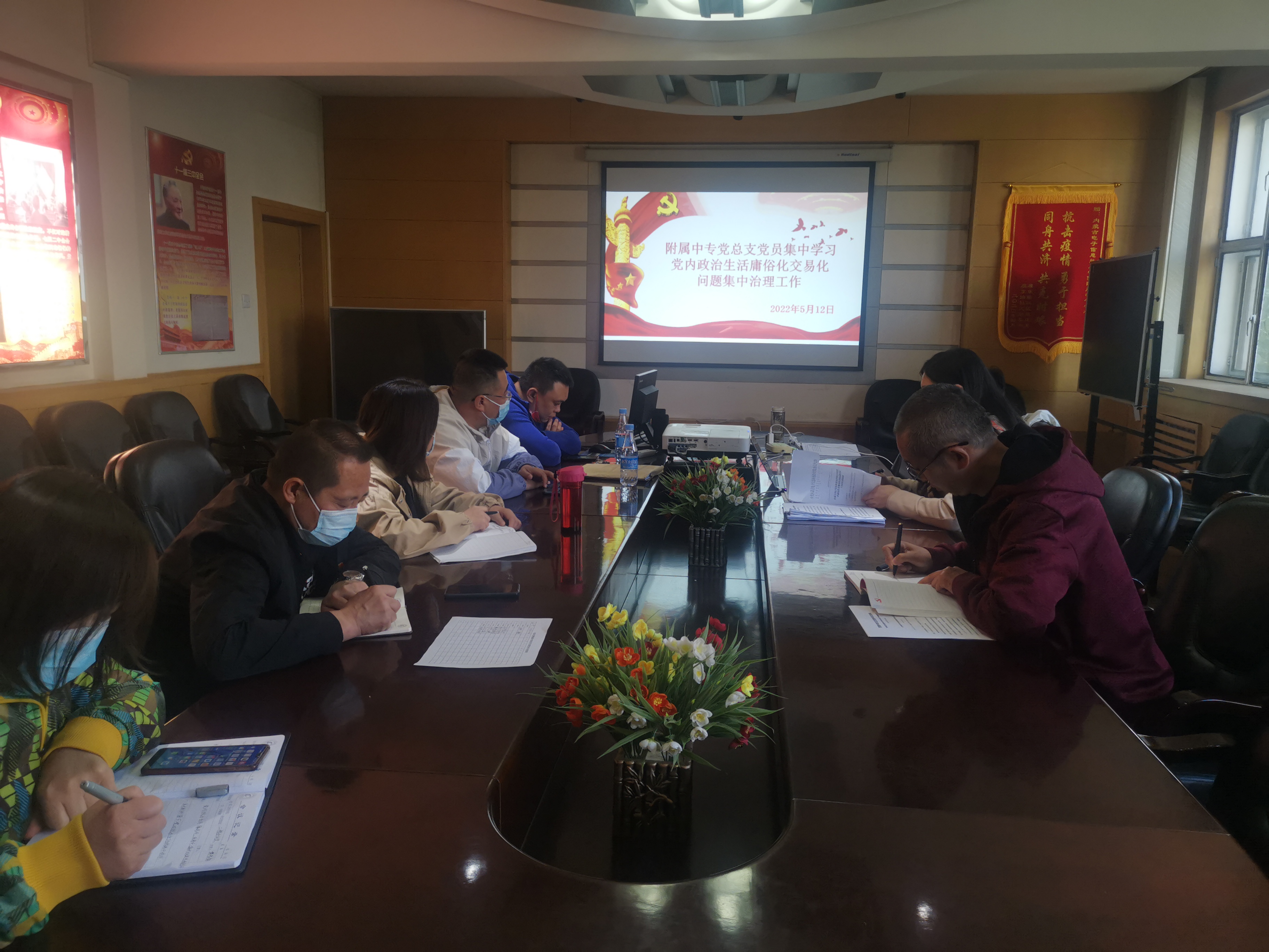 5月12日下午,附属中专党总支召开党内政治生活庸俗化交易化问题集中治理工作专题会议。党总支组织统战委员李贵军主持会议,全体党员参加。
