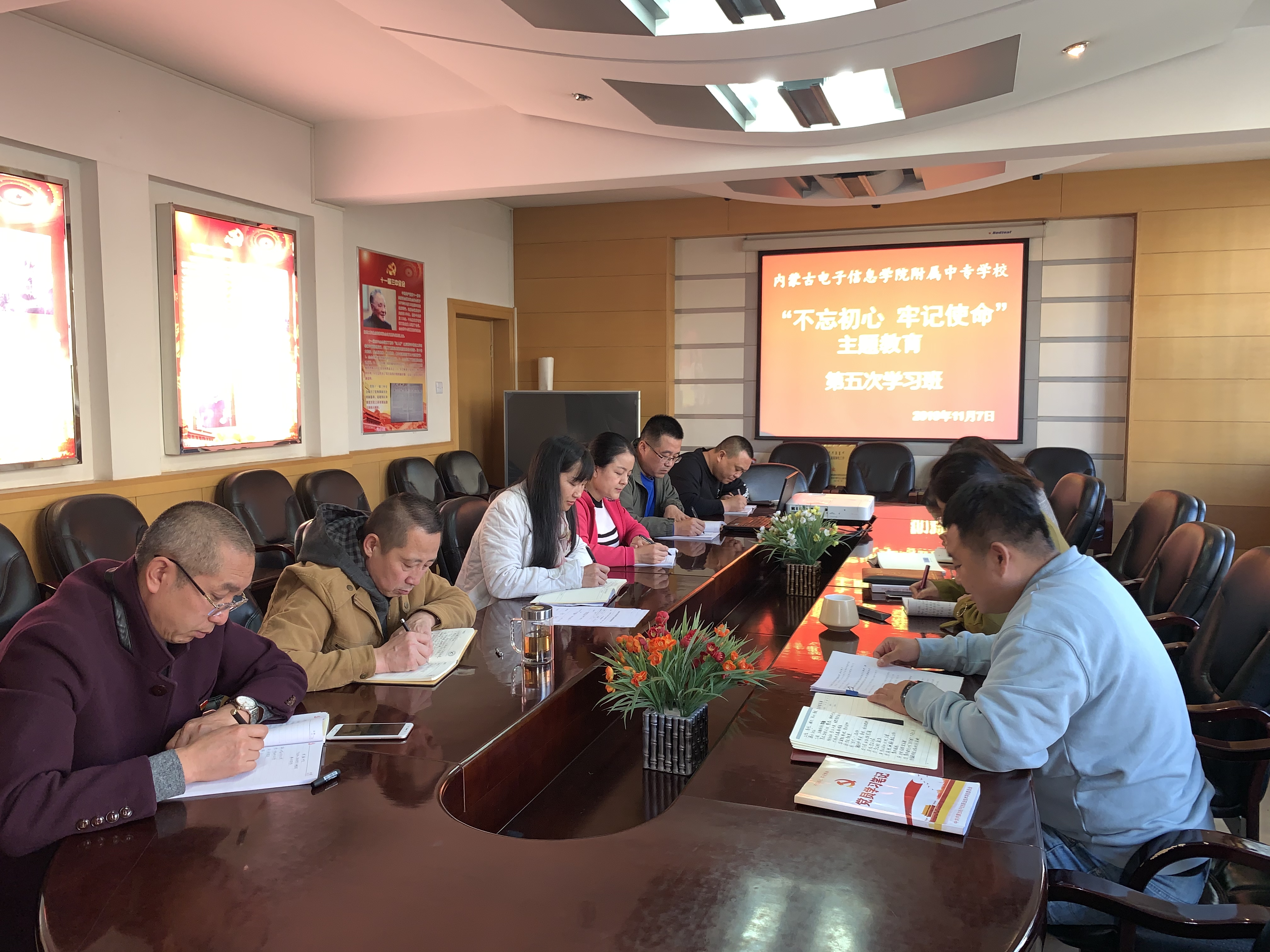 2019年11月7 日下午,附属中专学联合党支部校召开了“不忘初心、牢记使命”主题教育第五次学习会,附属中专学校科级以上干部和全体党员参加了会议。