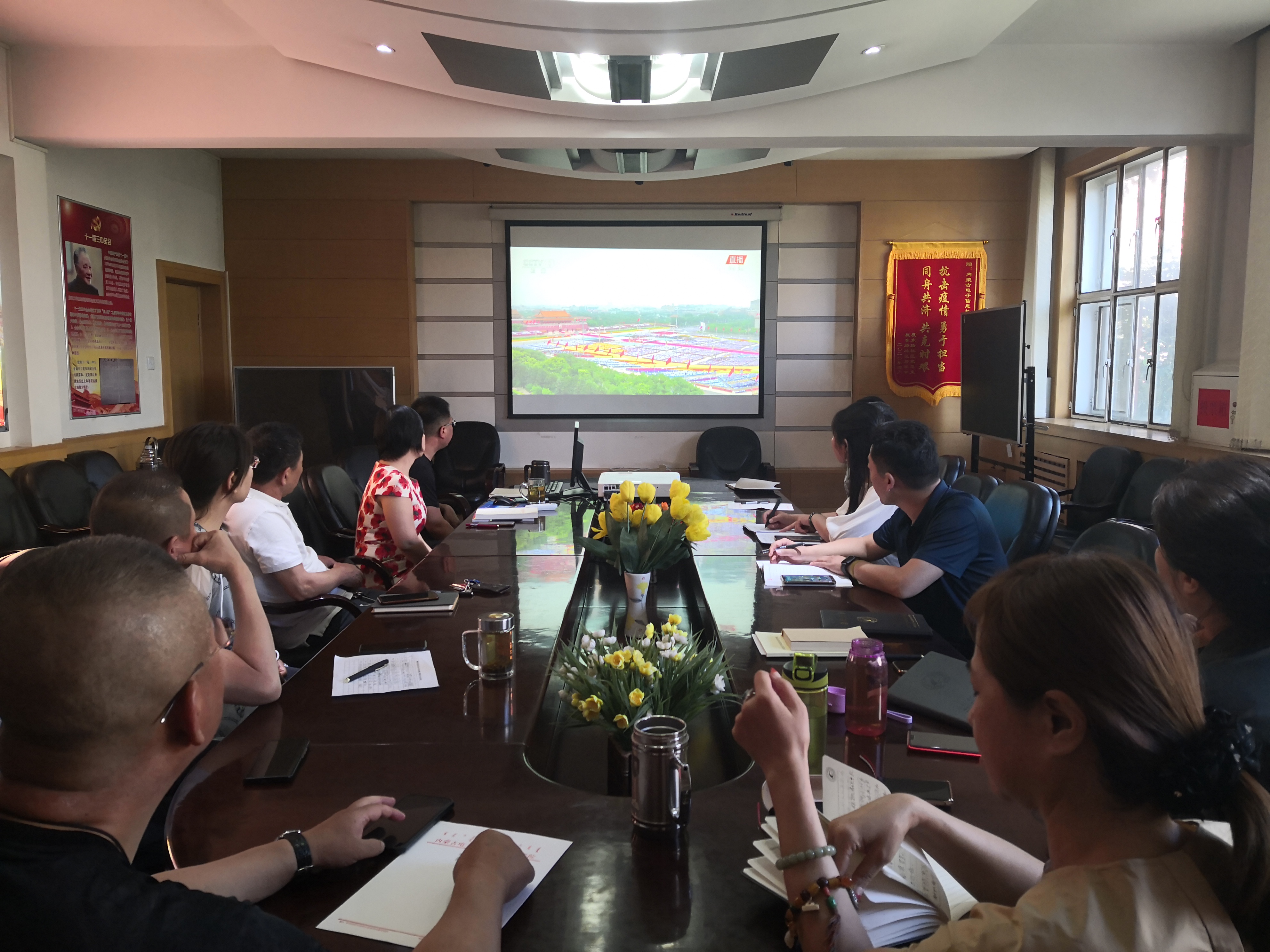百年征程波澜壮阔,百年初心历久弥坚。2021年7月1日上午,庆祝中国共产党成立100周年大会在北京天安门广场隆重举行。按照学校要求,附属中专设立分会场,全体教职工在二楼会议室集体观看庆祝大会直播盛况。