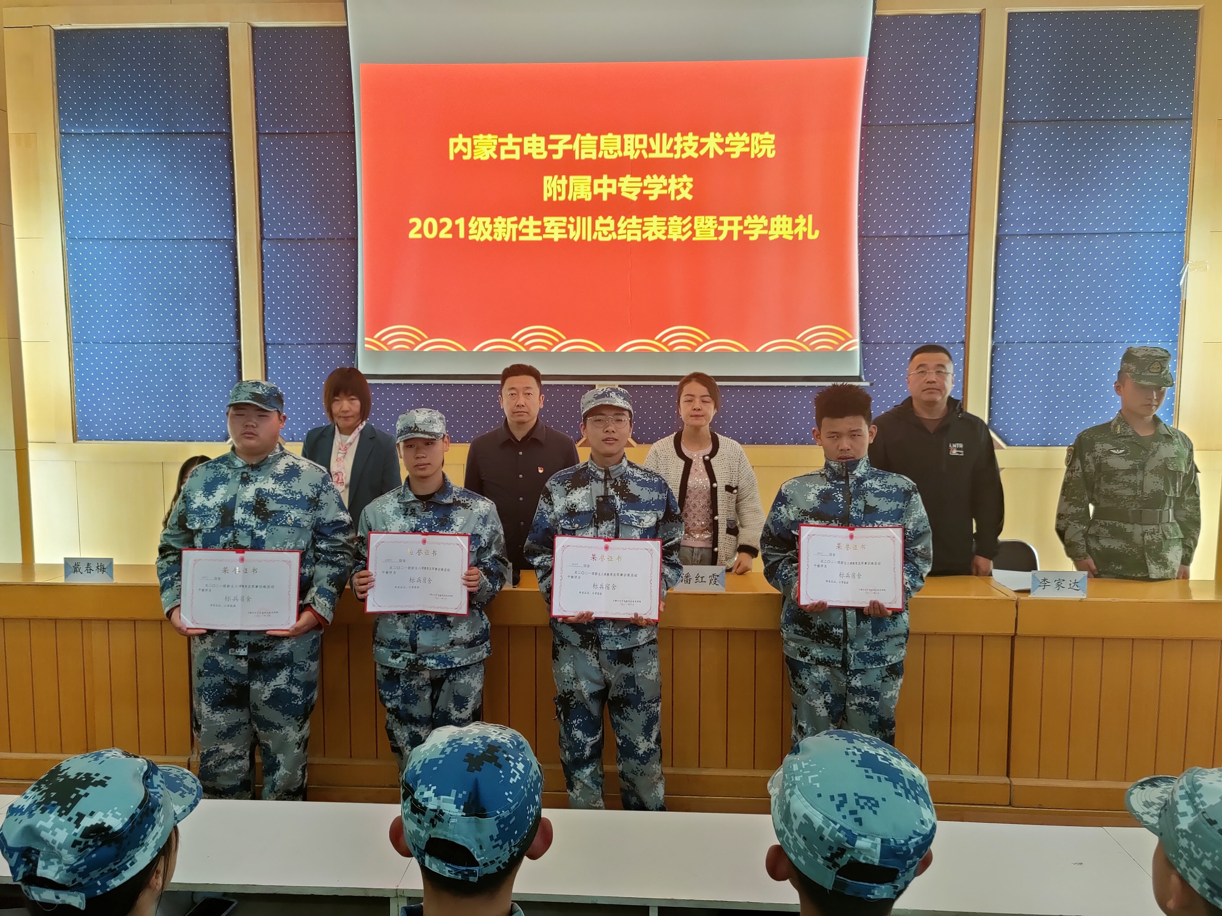 随后,校领导为军训先进集体及先进个人颁发荣誉证书。