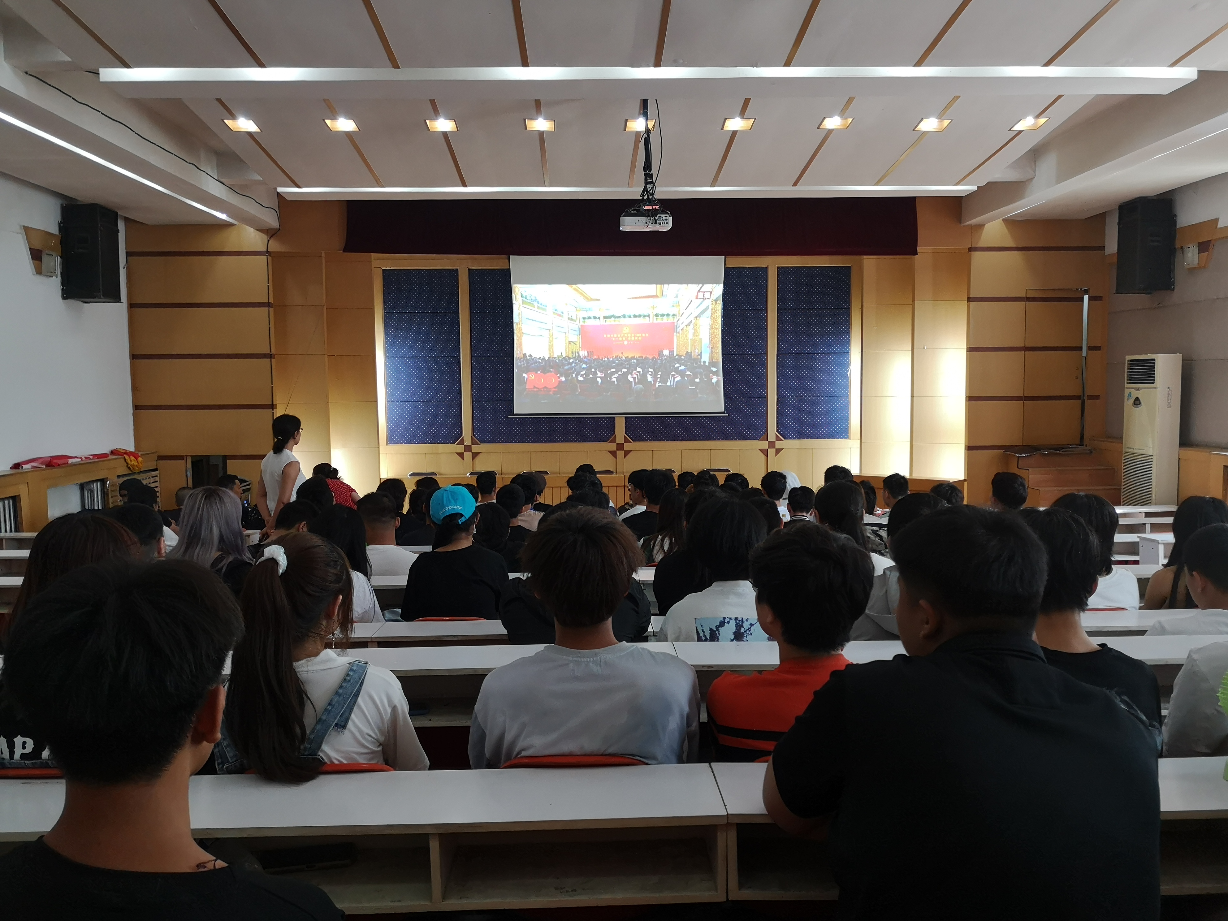 6月29日上午10时,庆祝中国共产党成立100周年“七一勋章”颁授仪式在人民大会堂隆重举行,附属中专组织师生在二楼报告厅集体观看直播盛况。