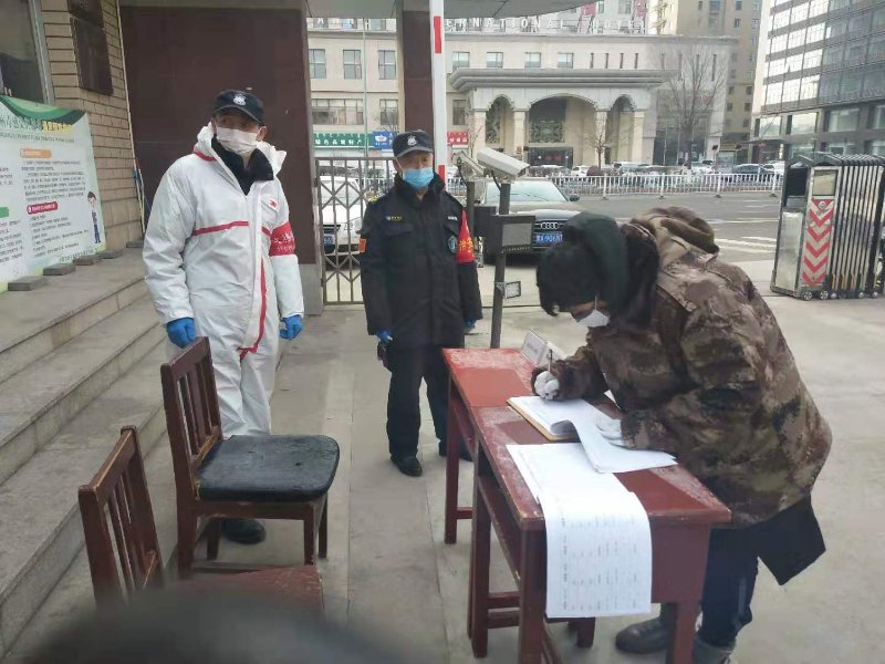 附属中专学校校长靳洪玲陪同领导班子查看了大门口等关键点的值守情况。详细询问了值守一线的工作人员,认真查阅了人员和车辆进出校门登记簿,仔细查看了家属楼入户排查情况。