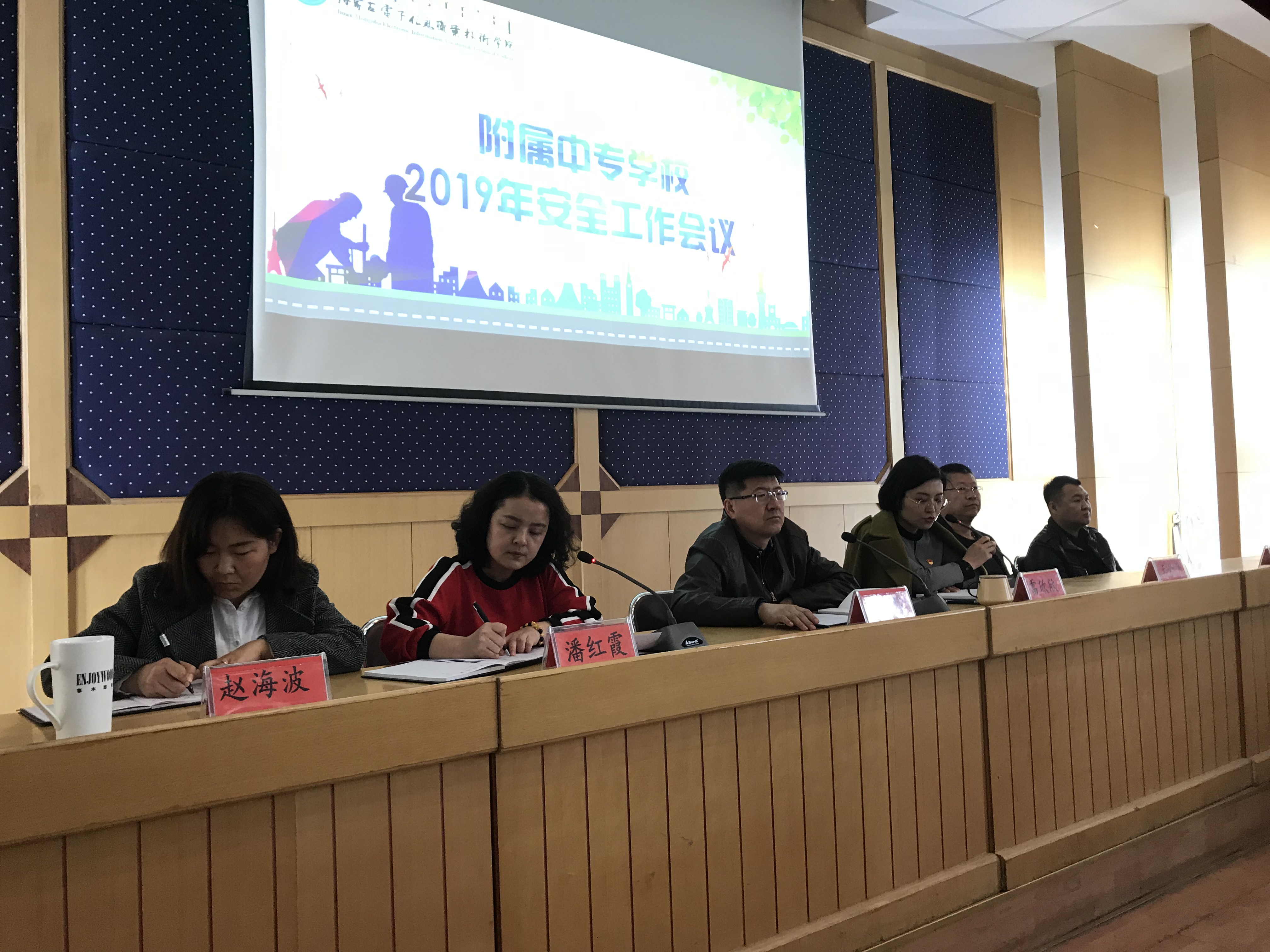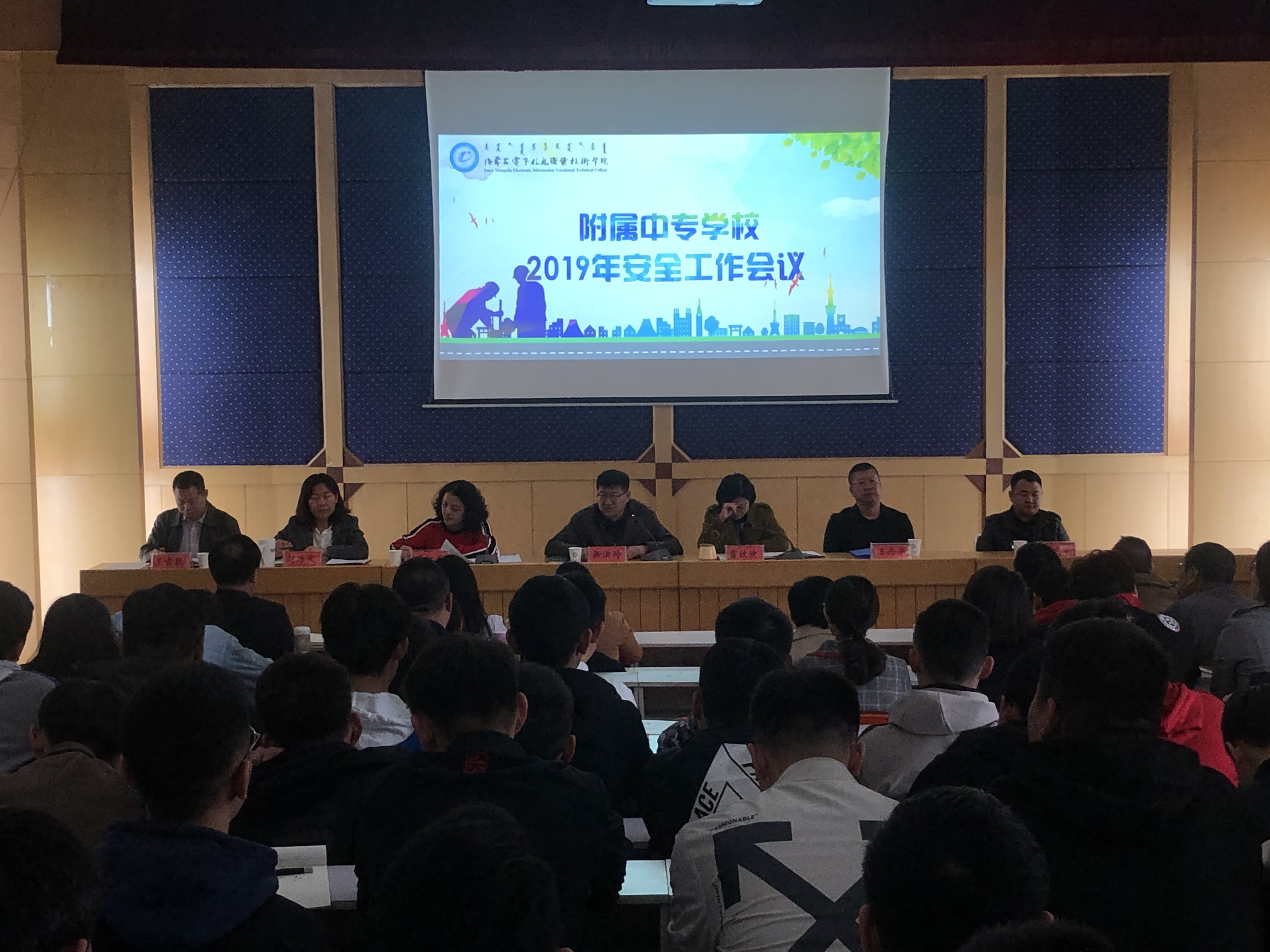 按照学院党委要求,3月19日下午,附属中专学校在多功能报告厅召开2019年安全工作会议,传达全国、全区以及学院安全稳定工作相关会议精神,并对学校安全工作的重点任务做出了具体的安排与部署。学校校长靳洪玲、党总支书记雷欣欣、各科室负责人在主席台就座。全体教职工及学生代表160余人参加会议。会议由学校办公室主任潘红霞主持。
