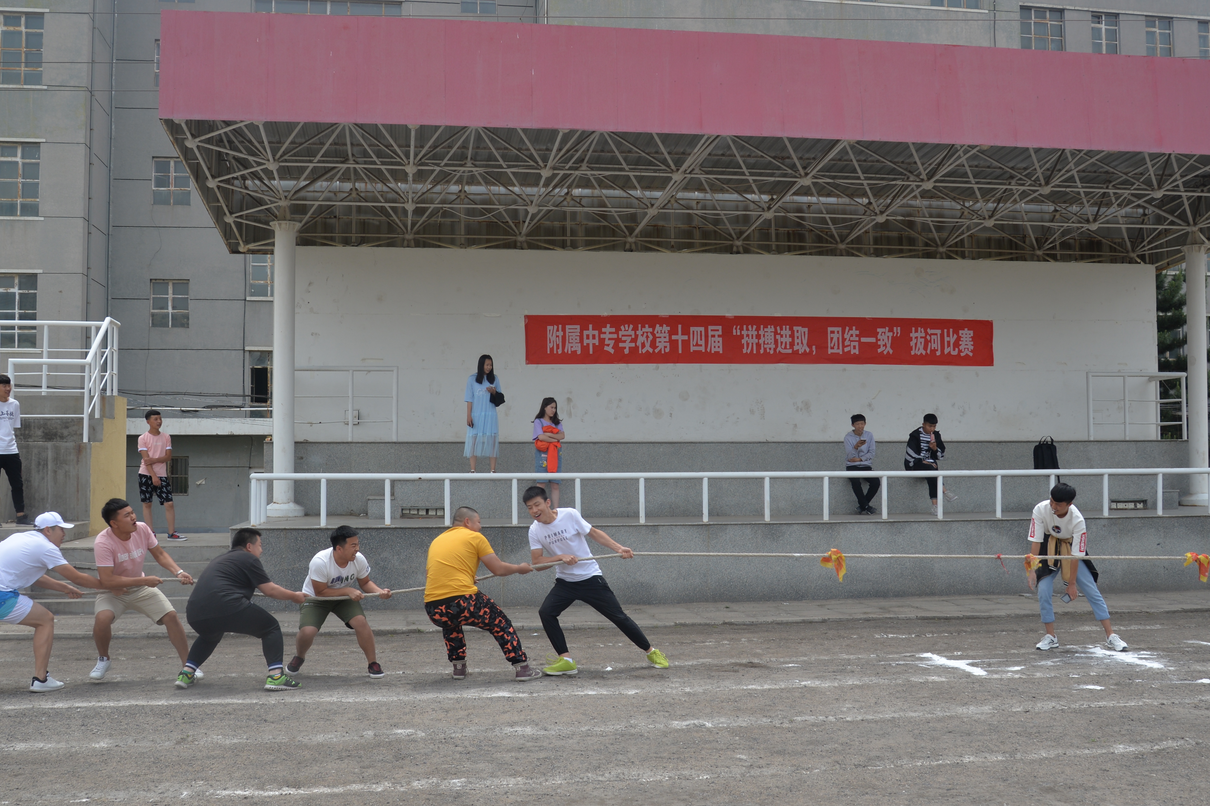 附属中专学校组织拔河比赛