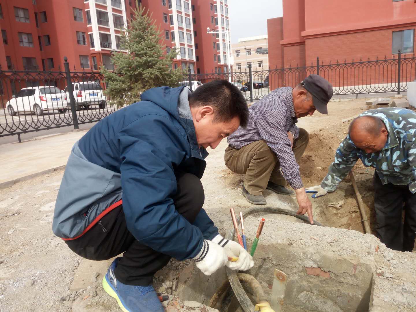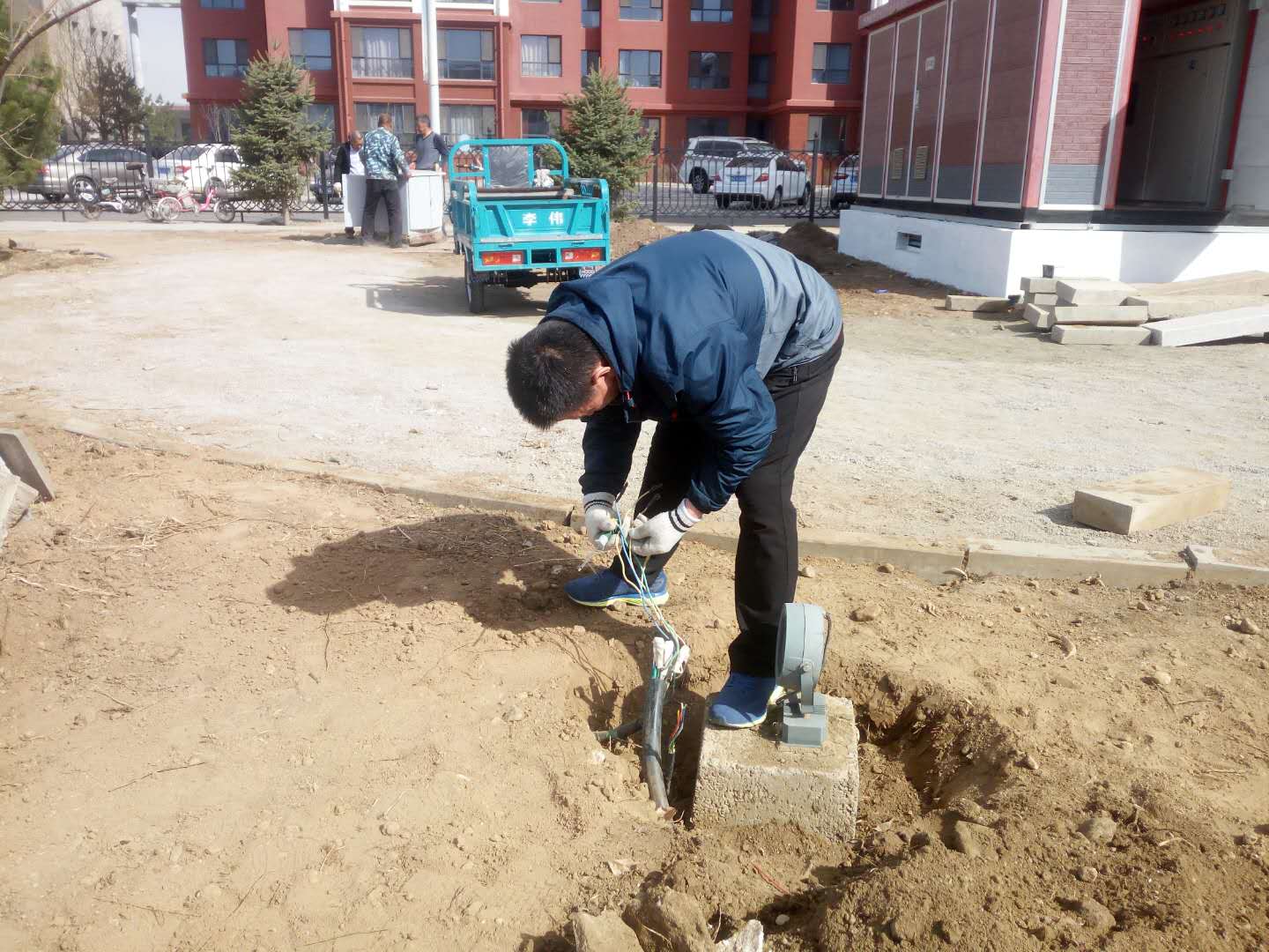 水电科工作人员对地灯电缆进行串接