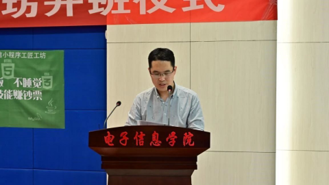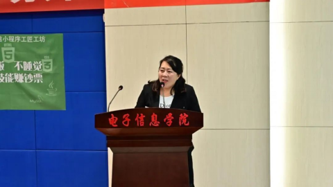 微信小程序工匠工坊校方教师代表杨东霞致辞,她首先感谢了学校及学院领导为学生们创造的这次来之不易的学习机会,保证自己会在没课的时间全程陪同工坊学生共同学习,同时希望学生们把握机会,努力学习。