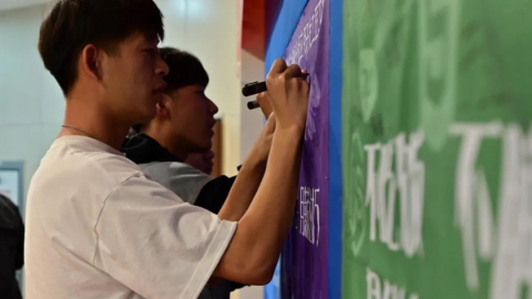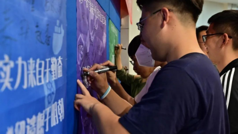 随后,工坊所有学生依次到班旗上签字,班旗是一个工坊班级的标志,是凝聚力的体现,此举也表达了学生们会努力学习的坚定决心,同学们热情高涨,斗志昂扬。